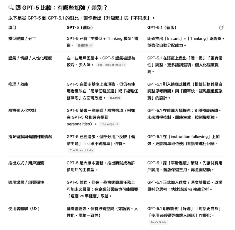 - ChatGPT介面手動選擇:若你想手動指定,部分用戶可在「模型選擇器」中直接選擇GPT-5.1 Instant或GPT-5.1 Thinking。這個選項會顯示在ChatGPT主界面模型欄位,或App上的模型切換功能區。