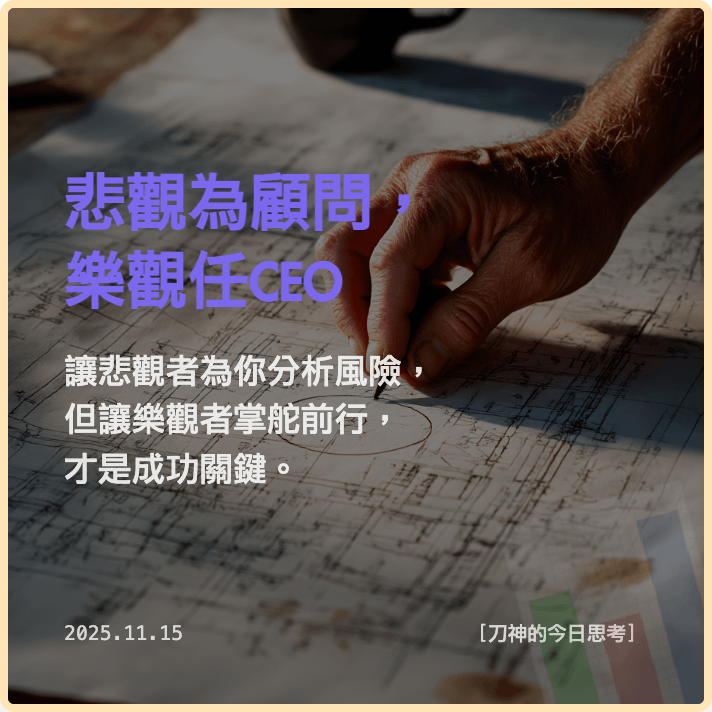 樂觀不是一種情緒,而是一種策略。它是一種「先開槍,後瞄準」的行動許可證。