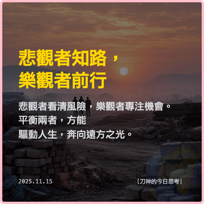 很多人有個誤解,覺得樂觀就是傻樂,就是盲目自信。不,這是雞湯,不是我們今天要聊的硬核邏輯。