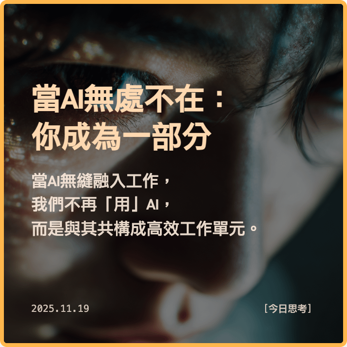 這就引出了一個更有意思的問題:當一個強大的工具不再是需要你特意去打開的「App」,而是像空氣一樣滲透到你所有日常工作流裡的時候,這對我們來說,到底意味著什麼? 我們是會變得更強大,還是會不知不覺地,成為一個更厲害的「工具人」?